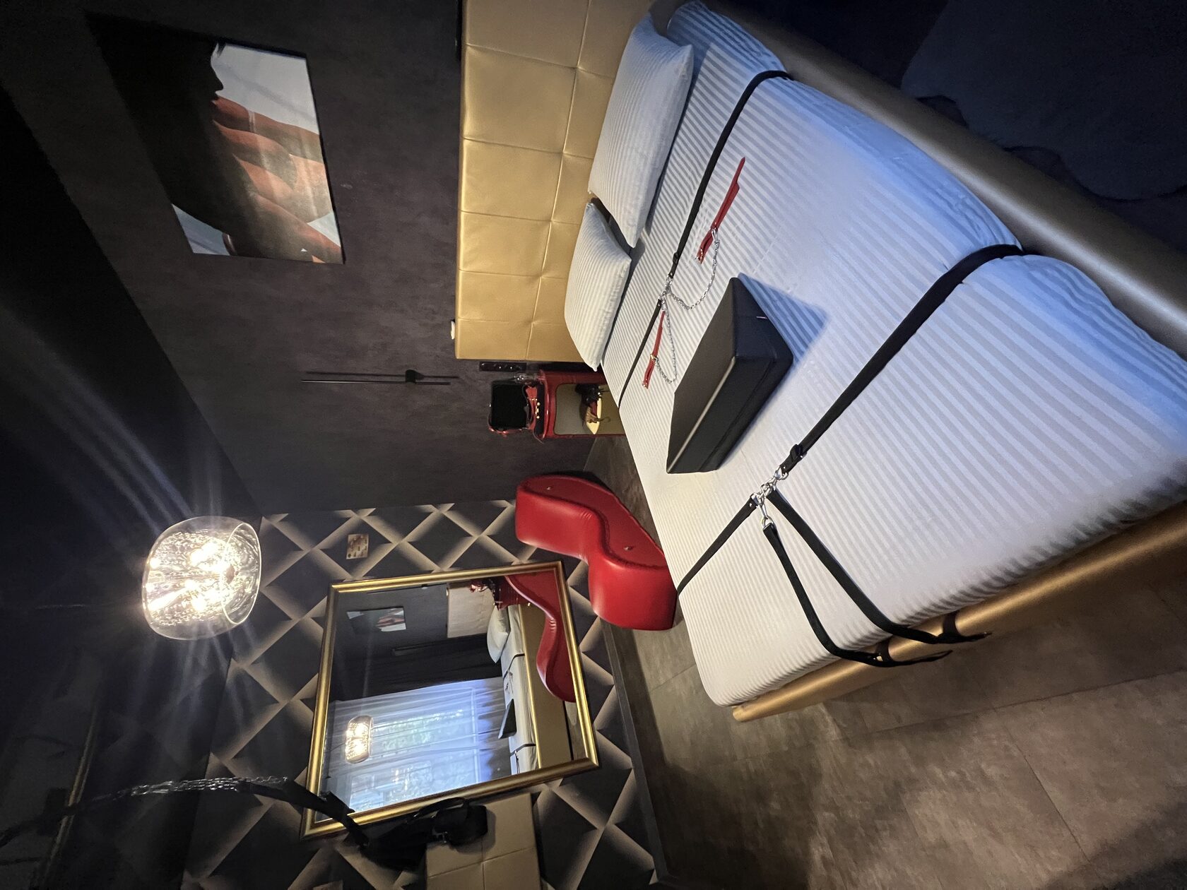 • VIP-номер — романтический интерьер, интимная подсветка, огромное зеркало, кушетка «Тантра».